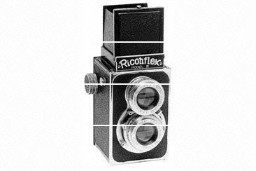 特徴 | コダック式シンクロターミナル付カメラ。発売と同時にリコーブームが起き、その後二眼レフ全盛時代へと進む。カメラの大衆化に大きな役割を果たした。昭和25年1月発売。形式:レンズシャッター式二眼レフカメラ、感光材料:120フィルム、画面サイズ:60×60ミリ、価格:5,800円。 |
