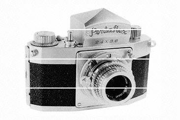 特徴 | ペンタミラー式ファインダー付の35ミリ判レンズシャッター式一眼レフカメラ。シャッターはビハインド式。昭和30年4月発売。形式:レンズシャッター式一眼レフカメラ、感光材料:135フィルム、画面サイズ:24×36ミリ、価格:21,500円。 |