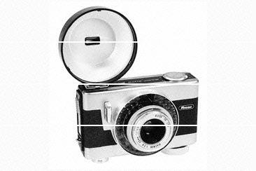 特徴 | レンズキャップ兼用のフラッシュガン付。昭和39年4月発売。形式:レンズシャッター式透視ファインダーカメラ、感光材料:135フィルム、画面サイズ:24×36ミリ、価格:15,800円。 |
