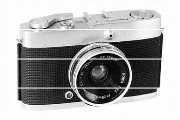 特徴 | 超広角レンズ(28ミリ)を装着した35ミリ判レンズシャッターカメラ。昭和39年7月発売。形式:レンズシャッター式透視ファインダーカメラ、感光材料:135フィルム、画面サイズ:24×36ミリ、価格:24,000円。 |