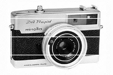 特徴 | ラピッド式フィルム使用の24×24ミリ判カメラ。昭和40年4月発売。形式:レンズシャッター式透視ファインダーカメラ、感光材料:ラピッドフィルム(35ミリ)、画面サイズ:24×24ミリ、価格:16,300円。 |