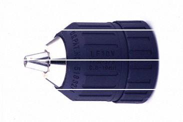 | 特徴 | 電動工具の電気ドリルが便利なコードレスの電池ドリルに移行して行く中、今までの歯付ハンドルが不要な手締め方式として開発された。チャック内部にベアリング機構を取り入れ、且つ手締めスリーブを軽量化する事で実用可能な把持性能が発揮できる様にした。世界で最初に安価で市場性のある新しい形の工具用チャックとして、作業工具業界及び住宅リフォーム等のDIY商品の開発に寄与すると共に、各国にも輸出され、国際的に高い評価を得た。 |