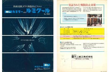 | 特徴 | 1973年に起きた第1次オイルショック以降、機運の高まった省エネルギーのニーズに応え、熱線遮断効果のある建物用ウインドーフィルムとして開発された。窓ガラスに貼るだけで、太陽光による室内および窓際の温度上昇を抑制することができ、夏場の冷房効率を向上させ省エネルギー効果に貢献します。現在では、地震発生時のガラス破片の飛散防止対策をはじめ、防犯対策、紫外線カット、装飾などさまざまな機能を付加した製品を展開しています。 |